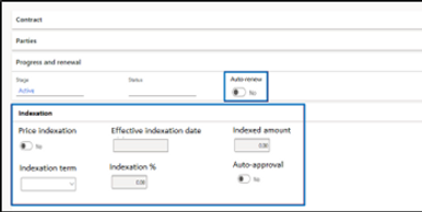 Include periodic price adjustment in contract negotiations to help get better terms. Define price adjustments based on percentage and duration – e.g. 1% increase in unit price after 2 years. Contract management for Microsoft Dynamics 365 provides control and flexibility on how price adjustments can be managed. Indexation can be automatically applied or set up to require review and approval before it’s applied.