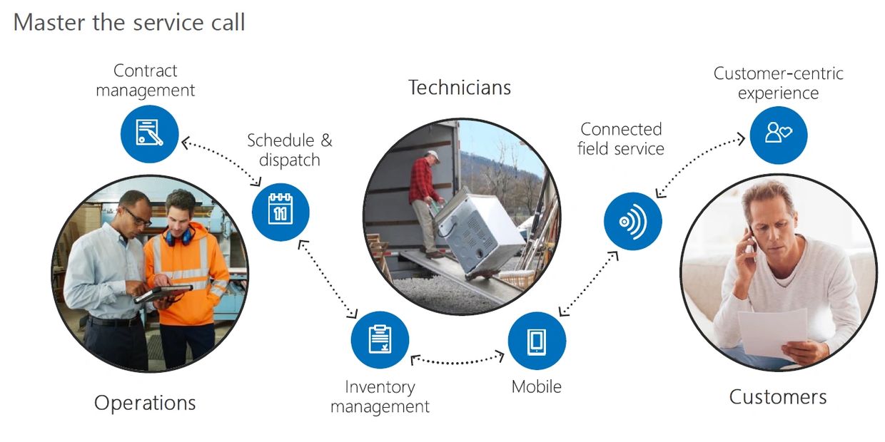 Microsoft Dynamics 365 Field Service solution provides a comprehensive solution for service organizations including telecom, construction, real estate and HVAC industries. The Microsoft Dynamics Field Service solution provides Contract Management, Asset Management, Scheduling and Dispatching, Technician Management, Inventory Management with native mobile capability.