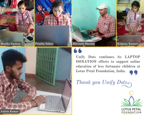 Unify Dots has also donated approximately 50 laptops (new or lightly used) to faculty and high school children to allow for more advanced work that cannot be done with Tablets.