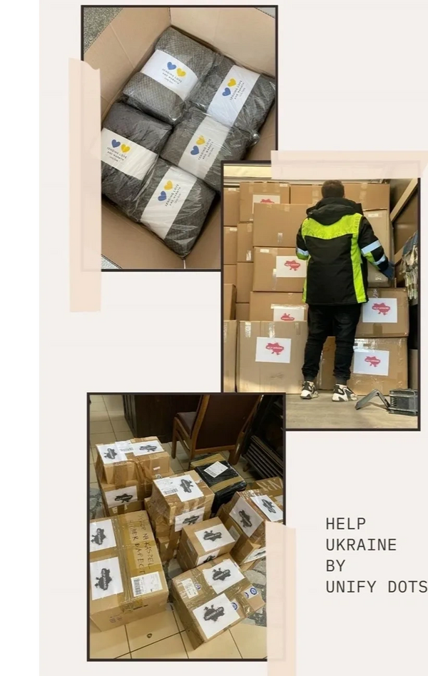 We worked actively with our team in Poland and donated funds to purchase items that refugees and displaced Ukrainians needed. We partnered with HelpUkraine Center which has a warehouse in Chelm, Poland and shipped the following products most funded by us and some via donations and help we raised.